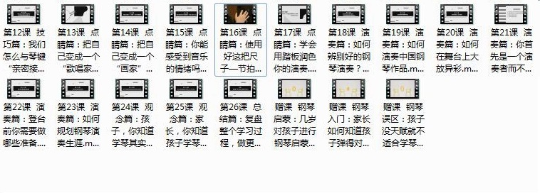 收藏 本《跟大师学钢琴演奏技巧》全套视频教程内容目录如下: 琴类教程视频教程全套 本站所有内容均可免费下载 一、特别说明:注册会员后每天有3次免费下载各类模板、素材、课程次数,请慎用! 二、如急需下载多个素材,请赞助VIP获取更多下载次数!点击了解详细说明 三、赞助方式:注册会员—>赞助获取更多下载次数 上一篇:彩铅动物鸟猫狗等视频教程_彩铅动物绘超详细教程 下一篇:鹿神胸部训练视频_健身视频_完美的胸部训练