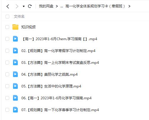 网课文件目录:高一化学全体系规划学习卡(寒假班)