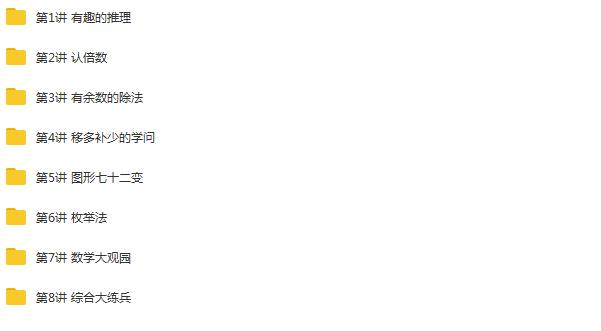 收藏 本二年级奥数网课具体的教学内容包括:有趣的推理、认倍数、有余数的除法、移多补少的学问、图形七十二变、枚举法、数学大观园、综合题型训练... 奥数题解题精彩视频讲解截图: 专题课程头图: 二年级数学题型二年级 本站所有内容均可免费下载 一、特别说明:注册会员后每天有3次免费下载各类模板、素材、课程次数,请慎用! 二、如急需下载多个素材,请赞助VIP获取更多下载次数!点击了解详细说明 三、赞助方式:注册会员—>赞助获取更多下载次数 上一篇:《趣味串讲二年级奥数知识点》动画视频课程(107集) 下一篇:二年级奥数精品视频教程全集(四合一)