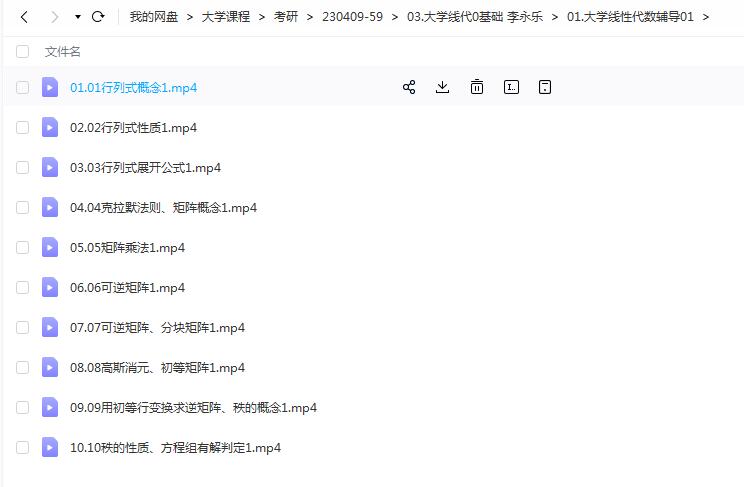 10.10秩的性质、方程组有解判定1.mp4 02.习题课01 03.大学线性代数辅导