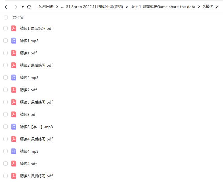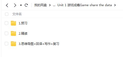百度云网课资源文件目录:├─Unit 1 游戏成瘾Game share the data