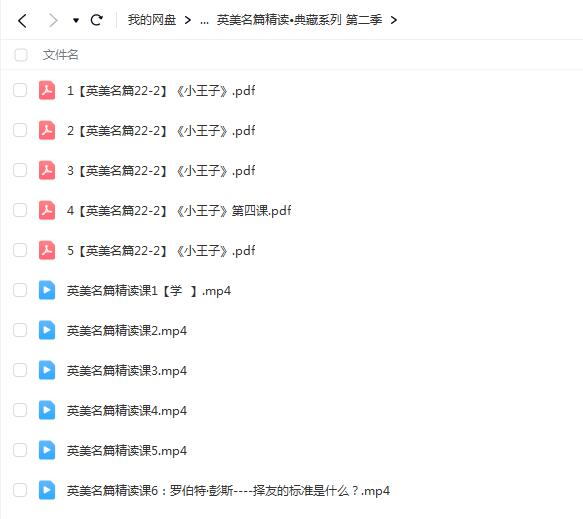 百度云网课资源文件目录:英美名篇精读?典藏系列 第一季