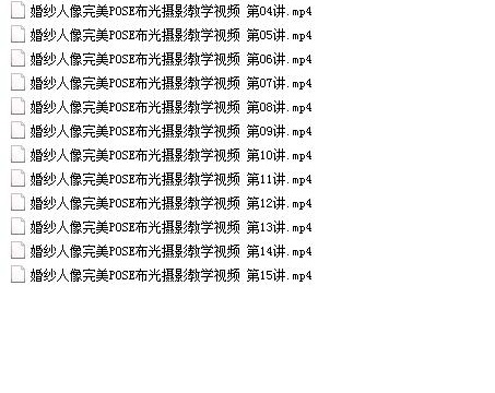 收藏 本婚纱人像摄影布光及摆POSE视频教程目录如下: 摄影摄像视频教程婚纱 本站所有内容均可免费下载 一、特别说明:注册会员后每天有3次免费下载各类模板、素材、课程次数,请慎用! 二、如急需下载多个素材,请赞助VIP获取更多下载次数!点击了解详细说明 三、赞助方式:注册会员—>赞助获取更多下载次数 上一篇:手机摄影达人培训视频教程(7讲) 下一篇:儿童人像摄影视频教程(12讲 特马拉齐)